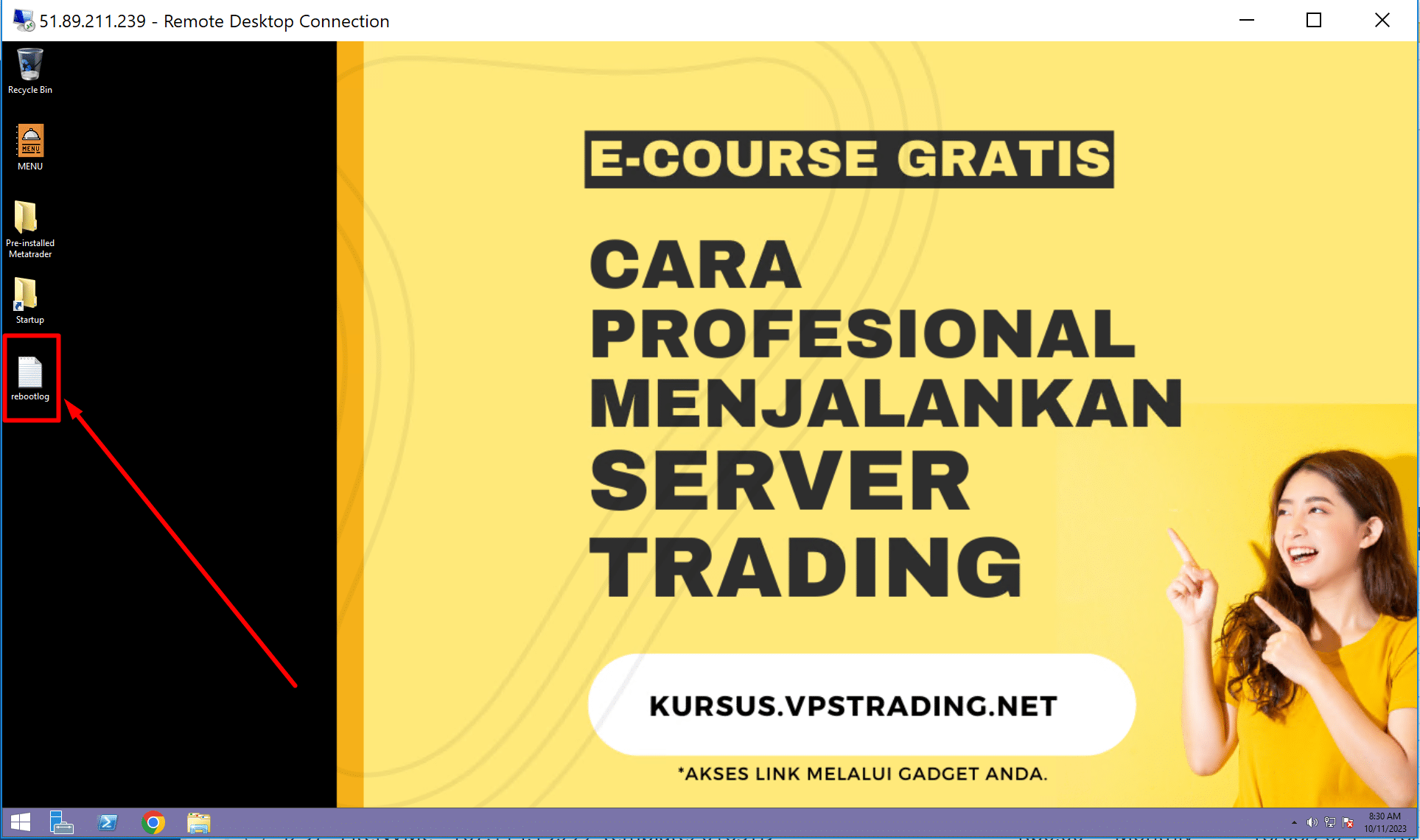 Untuk mempermudah Anda melakukan analisa dan memonitor uptime server trading yang Anda gunakan, kami telah menambahkan fasilitas rebootlog yang bisa Anda akses kapan saja melalui server trading Anda.